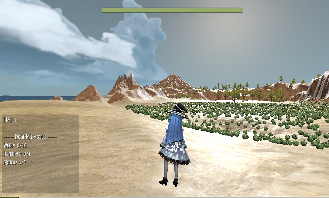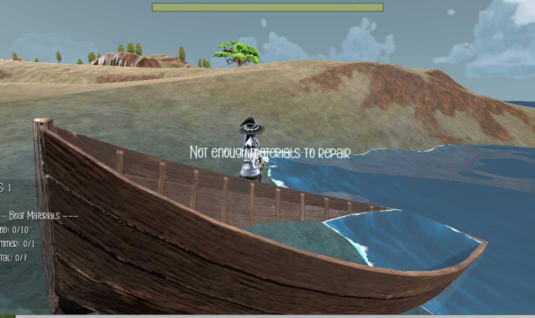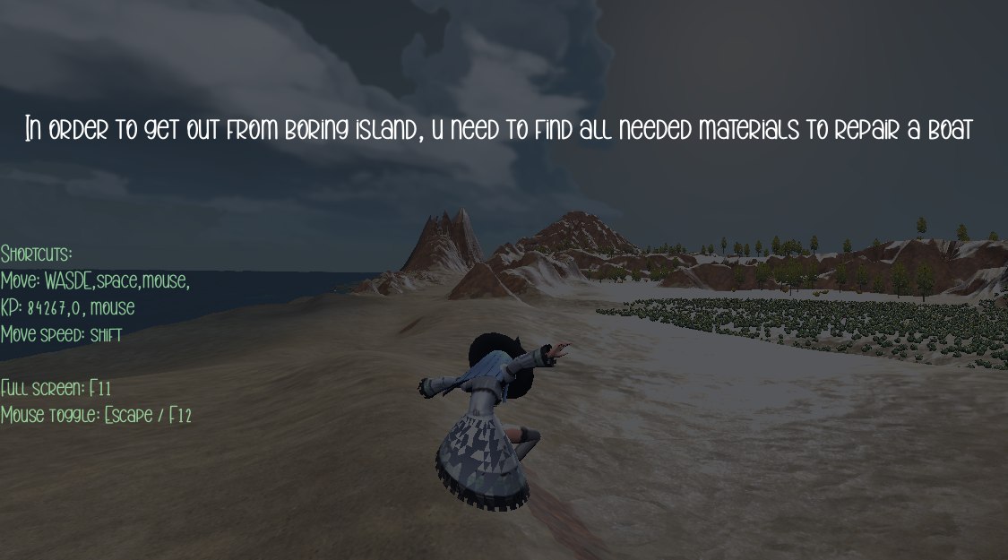 Explore a small island landscape, gather scattered materials, and survive long enough to repair a broken boat — your only chance to leave btw